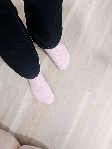 The PerfeQTion team has you change into a comfy robe and soft, fuzzy, pink socks. I love those socks! They then take you into the scanning room where the imaging machine is located.