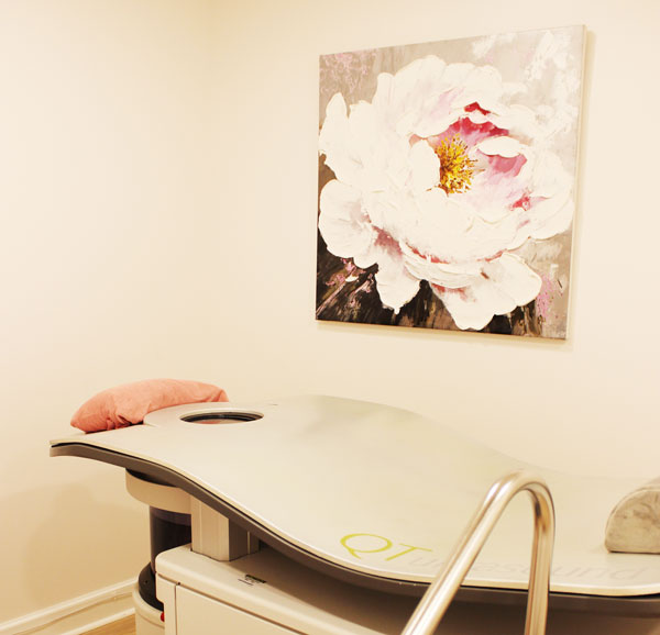QT Imaging is a technology that uses low frequency soundwaves to create a 3-dimensional image of your breasts. Think of it as a spa day for your breasts! No smashing and no radiating! This technology also provides more data points and can see through dense breast tissue, something mammograms cannot do.